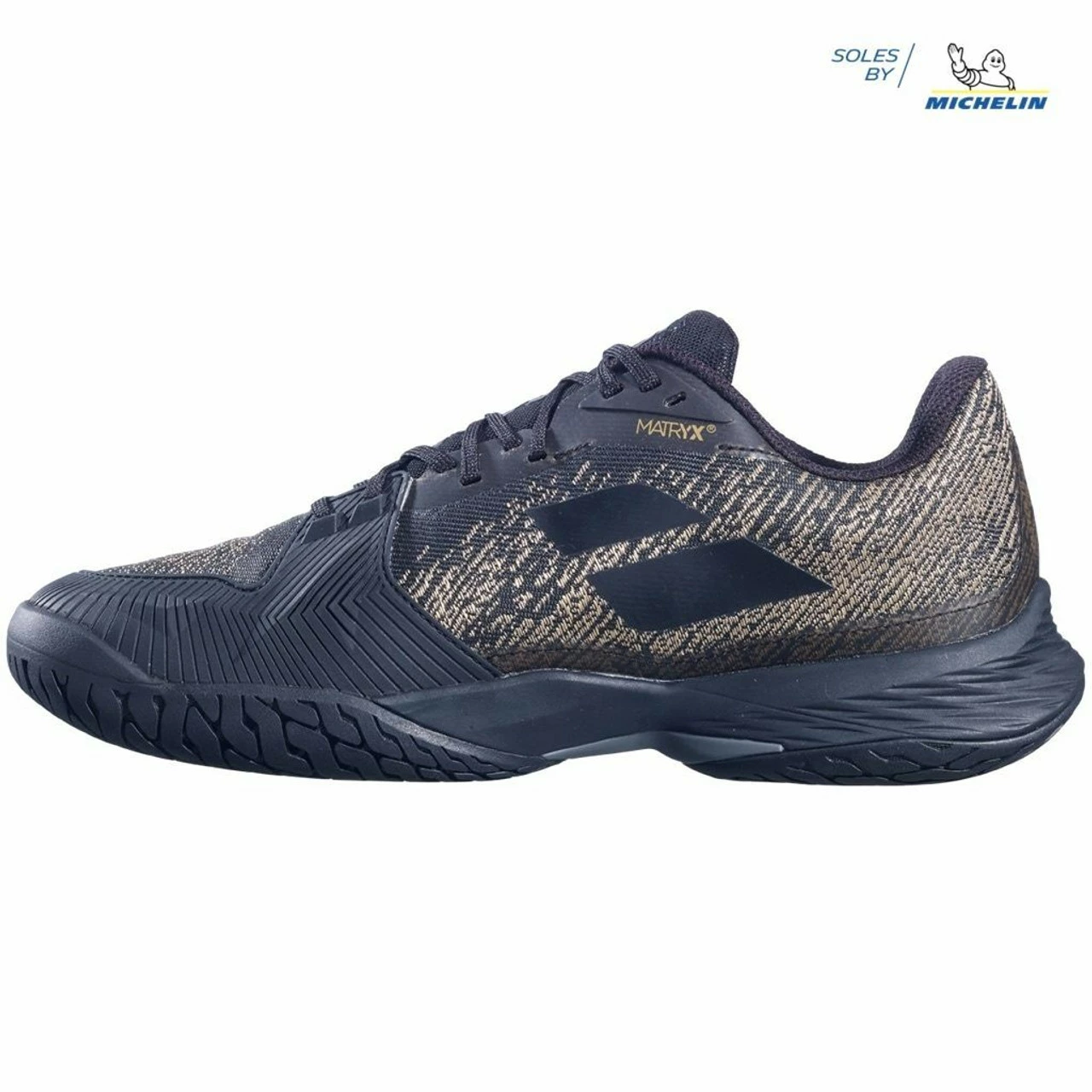 Outsole: Michelin DIN20 premium rubber outsole with a unique tread pattern for durability for wear on hard courts or any court surfaces.